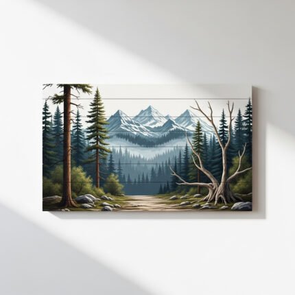 Rustic Forest Mountain Wall Art – Woodland Trees Nature Scene for Cabin Decor