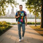 • A unique statement piece that elevates your casual wardrobe with a touch of modern art.